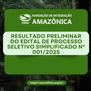 A Fundação de Integração Amazônica (FIAM) comunica a publicação do resultado preliminar da 1ª Etapa (Análise Curricular) do Processo Seletivo Simplificado (PSS) Nº 001/2025, juntamente